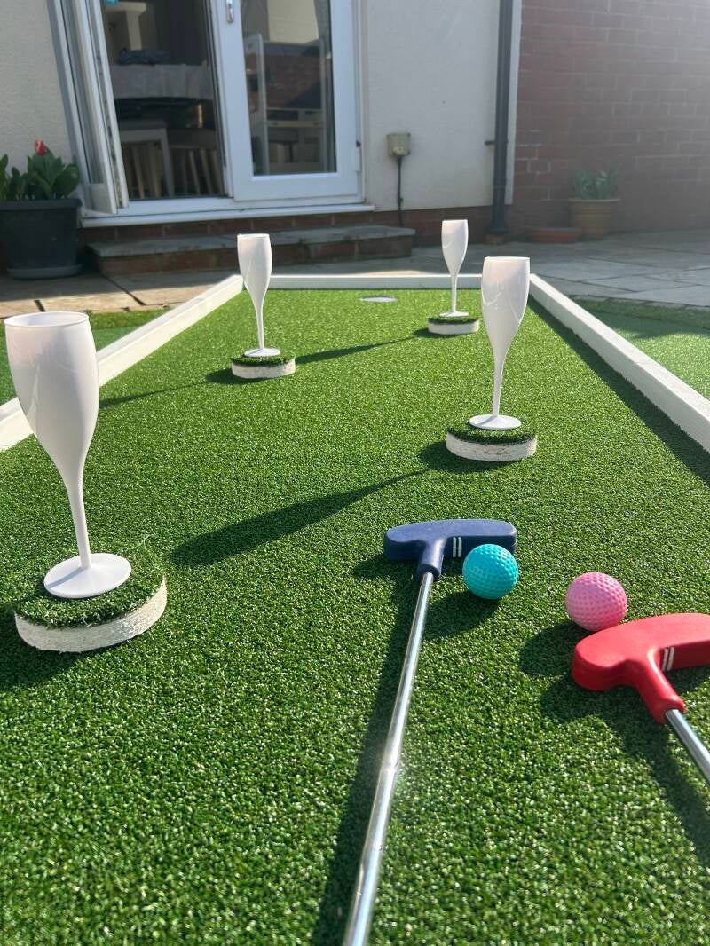 Discover the unique charm of The Pop-up Putt co.'s mini golf course in Exeter and surrounding areas. Designed for smiles, laughter, and a touch of friendly competition, our beautifully crafted courses bring joy to any event. Based in Exeter, we deliver a bespoke entertainment experience right to your chosen venue, whether that be for a wedding, corporate event or private parties. All prices include delivery, full setup and takedown, ensuring a stress-free experience for your event.